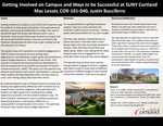 Getting involved on campus is one of the most important ways for students to make great connections, have good personal wellness, and succeed academically at college. The reason I wanted to teach this lesson was because when I was a freshman I was not sure how to get involved on campus and did not know all of the campus resources and that is why freshman should know all about how to get involved and all the resources on campus. This poster shows the importance of student engagement at SUNY Cortland and points out how joining clubs, organizations, and attending campus events will contribute to a good college experience. By understanding the ways of being involved on campus and looking into opportunities offered at SUNY Cortland such as student clubs, volunteer programs, and leadership work, student can take a good role in making there college experience successful.