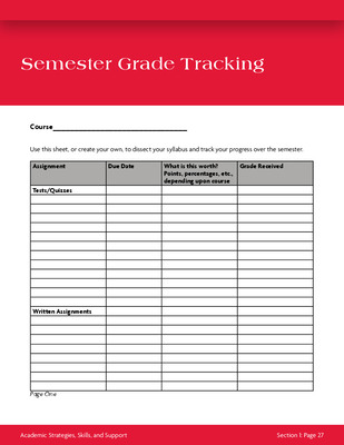 Semester Grade Tracking, Pages 27-28