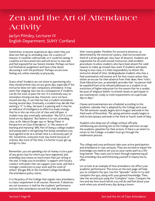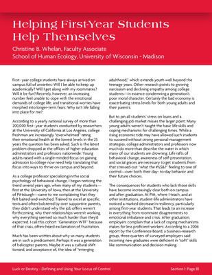 COR 101 Reader Section One: Academic Success