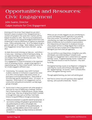 COR 101 Reader Table of Contents for use by first-year students at SUNY Cortland, 2025-2026 Academic Year. Released annually by the Advisement and Transition Office.