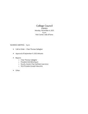 College Council Agenda, November 2023
