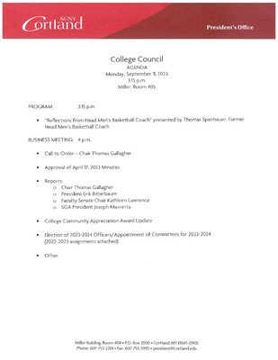 College Council Agenda, September 2023