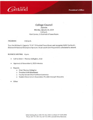 College Council Agenda, January 2024