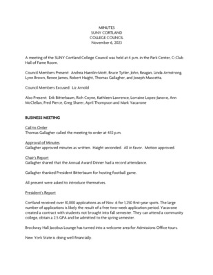 College Council Minutes, November 2023