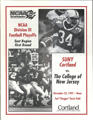 This publication includes information on schedules, coaches, player profiles, records, and team photographs. SUNY Cortland hosted The College of New Jersey in the NCAA Division III Football Playoffs East Region First Round.