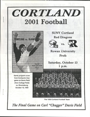 This publication includes information on schedules, coaches, player profiles, records, and team photographs. SUNY Cortland hosted the regular season game versus Rowan University.