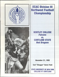 This publication includes information on schedules, coaches, player profiles, records, and team photographs. SUNY Cortland hosted Bentley College for the ECAC Division III Northwest Football Championship.