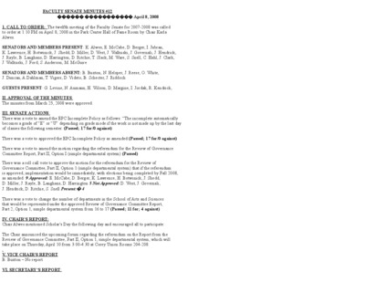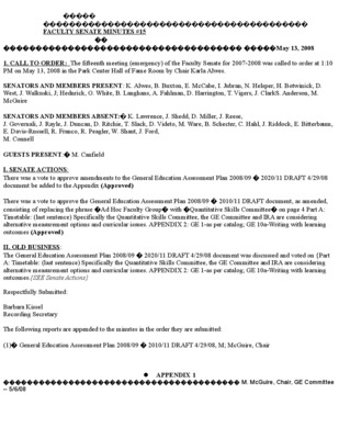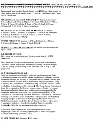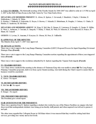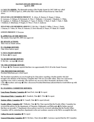 Faculty Senate Minutes No. 13, April, 17, 2007