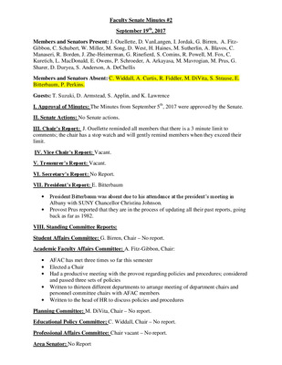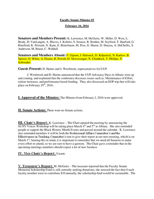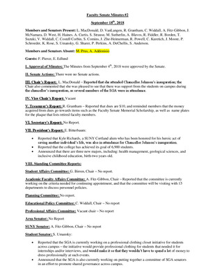 Faculty Senate Minutes No. 2 February 13th 2018