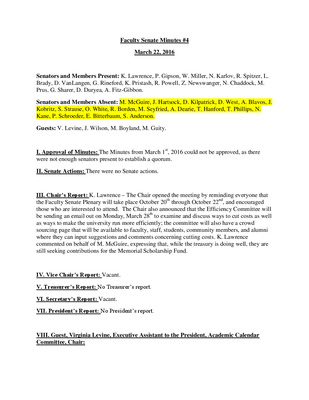 Faculty Senate Minutes No. 4, March 20, 2018