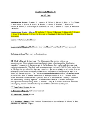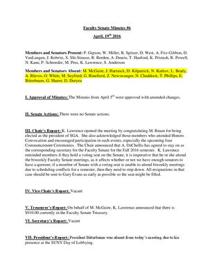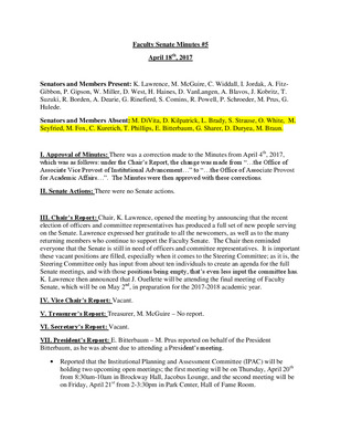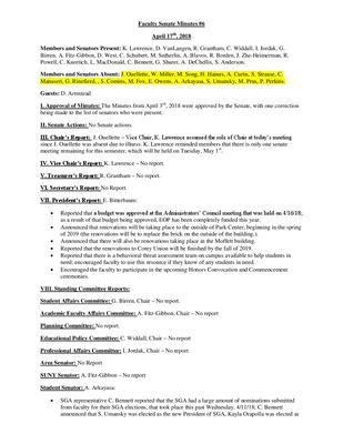 Faculty Senate Minutes No. 6, April 17, 2018