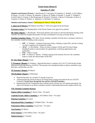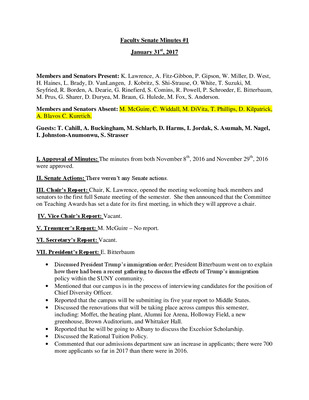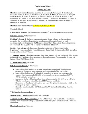Faculty Senate Minutes No. 1, January 30, 2018