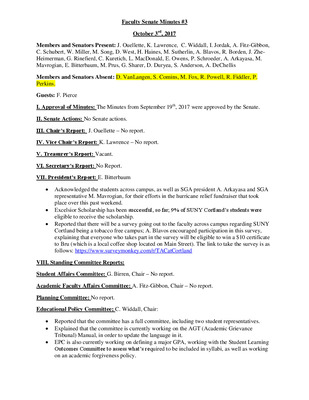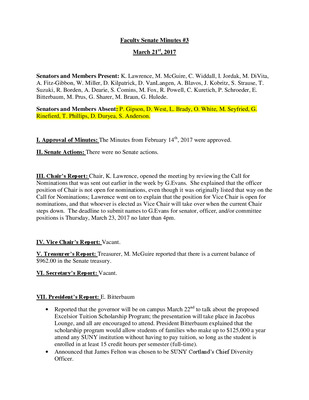 Faculty Senate Minutes No. 3, February 27 2018