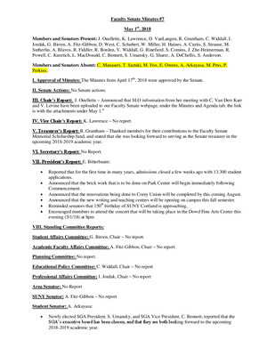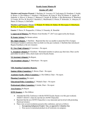 2017-2018, Faculty Senate Minutes