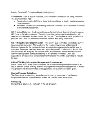 Faculty Senate GE Committee Report Spring 2018
