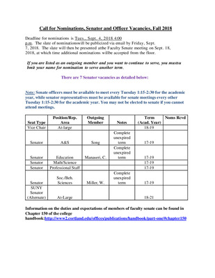 2018 October 23, Faculty Senate Minutes