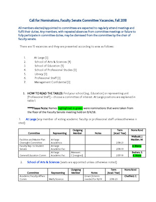 Faculty Senate Annual Report 2017-2018 Academic Year