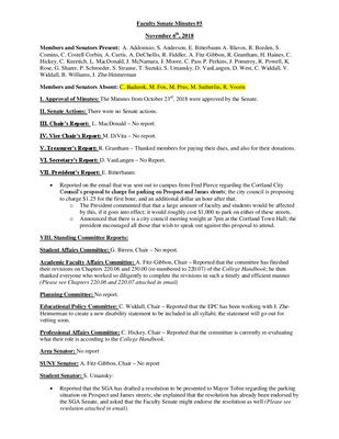 Faculty Senate Minutes, January 18-20, 2018