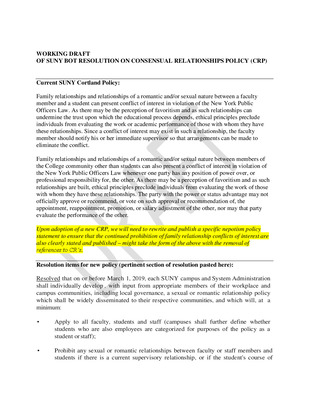 WORKING DRAFT OF SUNY BOT RESOLUTION ON CONSENSUAL RELATIONSHIPS POLICY (CRP)