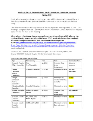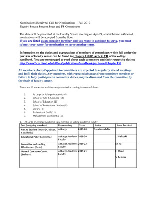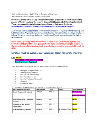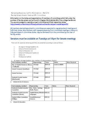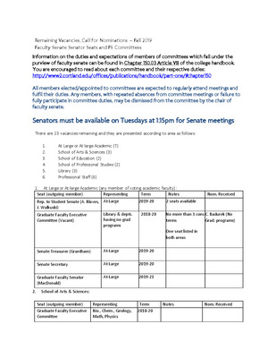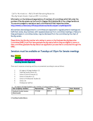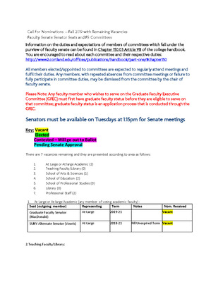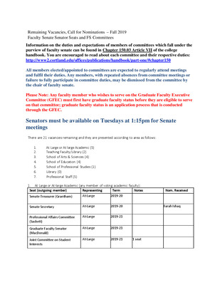 Remaining Vacancies, Call for Nominations – Fall 2019