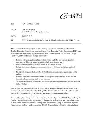 EPC’s Recommendation for Revised Syllabus Requirements for SUNY Cortland