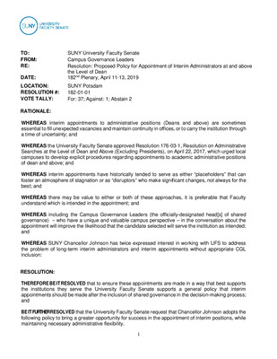 Resolution: Proposed Policy for Appointment of Interim Administrators at and above the Level of Dean
