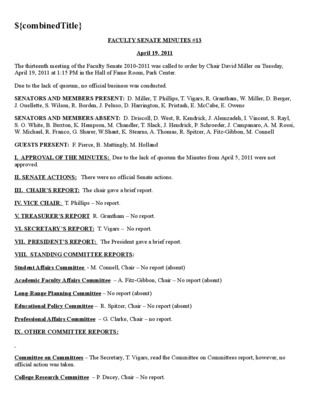 Faculty Senate Minutes No. 13, April, 17, 2007