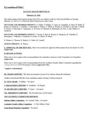 Faculty Senate Minutes No. 9, February 27, 2007
