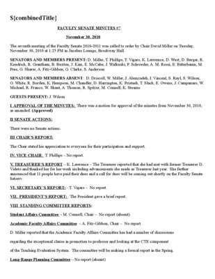 Faculty Senate Minutes No. 7, November 25, 2008