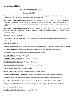 Faculty Senate Minutes No. 6, November 11, 2008
