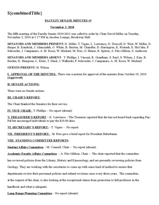 Faculty Senate Minutes No. 5, November 3, 2009