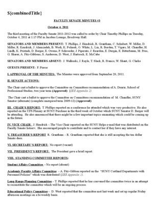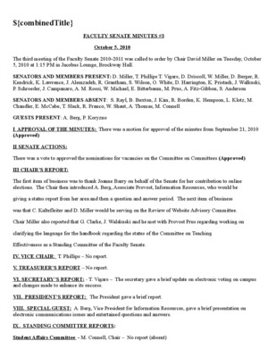 Faculty Senate Minutes No. 3, October 6, 2009