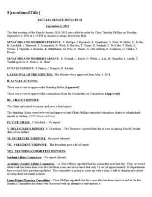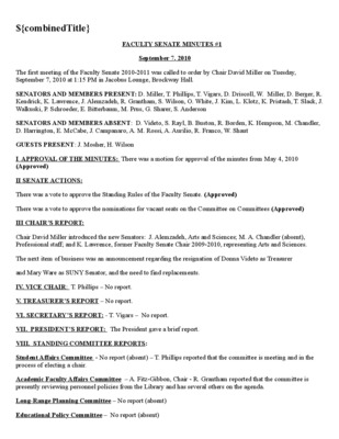 Faculty Senate Minutes No. 1, September 8, 2009