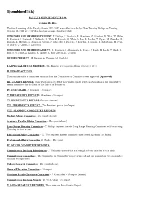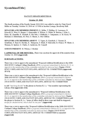 Faculty Senate Minutes No. 4, October 20, 2009