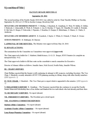 Faculty Senate Minutes No. 2, September 22, 2009