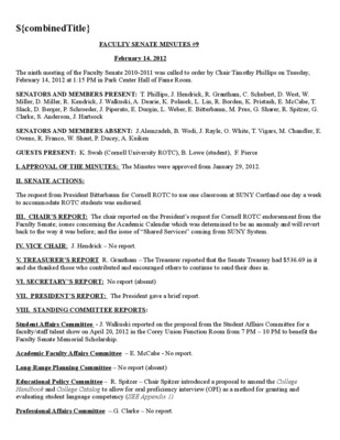 Faculty Senate Minutes No. 9, February 19, 2008