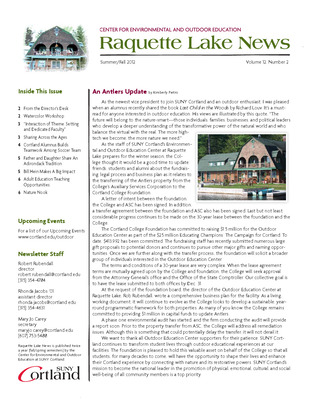 The Center for Environmental and Outdoor Education's Raquette Lake Newsletter, published in Summer/Fall 2012.
