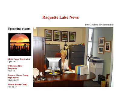 The Center for Environmental and Outdoor Education's Raquette Lake Newsletter, published in Summer/Fall 2016.