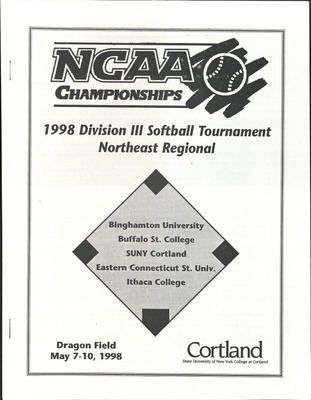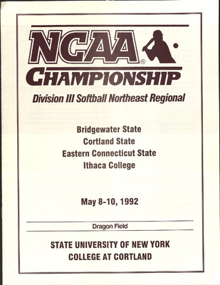 This publication includes information on schedules, coaches, player profiles, records, and team photographs. SUNY Cortland hosted the NCAA Division III Championship Softball Northeast Regional including SUNY Cortland, Bridgewater State, Eastern Connecticut State, and Ithaca College.