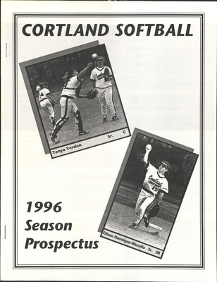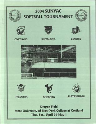This publication includes information on schedules, coaches, player profiles, records, and team photographs.SUNY Cortland hosted the SUNYAC Softball Tournament which also included Buffalo State, Geneseo, Fredonia, Oneonta, and Plattsburgh