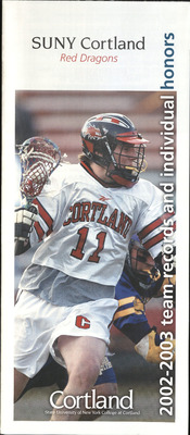 Team Records and Individual Honors is a program outlining achievements made by students and coaches for Cortland athletics. Those mentioned in the programs include team championship victories (such as the women’s Cross Country team in 1989 and 1997 for example), team overall wins/losses, coaching achievements & directories, new athletic records, individual player statistics, and highlights. This collection currently ranges from 1984-2002 and is arranged chronologically.