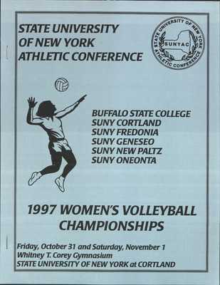 The 1997 SUNYAC (State University of New York Athletic Conference) Women's Volleyball Championship, took place at SUNY Cortland on October 31-November 1, 1997. The championship included SUNY Cortland, Buffalo State, Fredonia, Geneseo, New Paltz, and Oneonta.