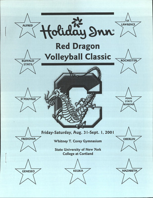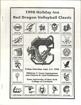 The Red Dragon Volleyball Classic Tournament took place at SUNY Cortland from September 2-3, 1994. The tournament included SUNY Cortland, Alfred, St. Lawrence, Keuka, Potsdam, Hartwick, Oswego, York, New Paltz, St. John Fisher, Le Moyne, Penn State-Behrend, Binghamton, Nazareth, Buffalo State, and Gettysburg.