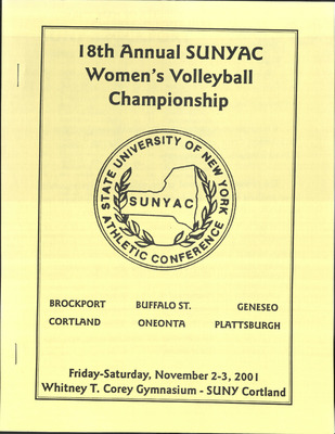 The 2001 SUNYAC (State University of New York Athletic Conference) Women's Volleyball Championship, took place at SUNY Cortland on November 2-3, 2001. The championship included SUNY Cortland, Brockport, Buffalo State, Oneonta, Geneseo, and Plattsburgh.