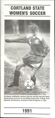 NCAA Championship, Division III Women's Soccer. Cortland State vs. Ithaca College, Methodist College, and College of St. Benedict. Hosted at SUNY Cortland Nov. 10-11, 1990.